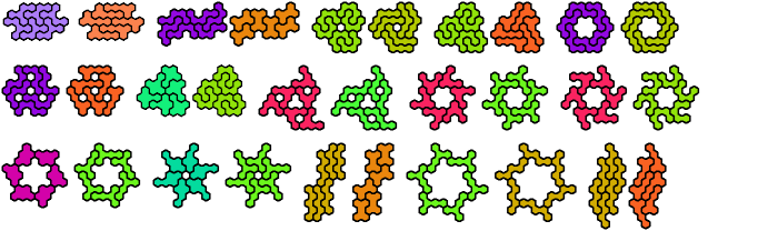 For compatible pairs of pentahexes with an odd number of tiles, see Pentahex Odd Pairs.