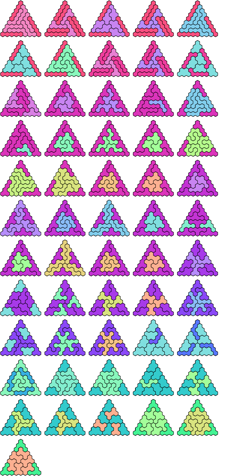 In March 2003, Erich Friedman's Math Magic studied the problem of arranging copies of a single polyhex to form a triangular polyhex.