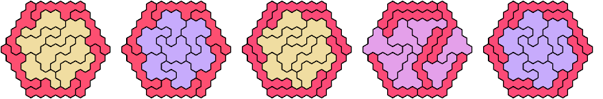 These seven heptahexes can tile a regular hexagon polyhex by themselves:
