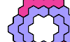 Tiling a Badge with Separated Copies of Three Pentahexes. Tile a polyhex badge with copies of three pentahexes so that no congruent pentahexes touch.