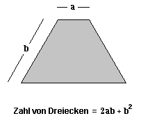 Anmerkung: Für den Rest dieser Seite werden Trapeze erwähnt werden, die man mit Polyiamonds legen kann. Dazu werden wir die Bezeichnung a-b-Trapez verwenden, um die Figur unten zu kennzeichnen. So ist das Trapez oben ein 7-4-Trapez.