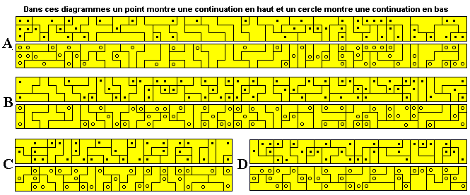 Les diagrammes suivants montrent des constructions de boîtes fait avec les hexacubes.. A et B sont 2x3x56 boîtes et C et D sont 2x3x27 boîtes.Combinaison des solutions donne 2x3x166, 3x4x83 et 2x6x83. Aussi blocs C et D sont faits entièrement d'un ensemble de morceaux de l'image miroir et donc A et B donnent solutions pour 2x3x112, 2x6x56 et 3x4x56 problèmes pour toutes boîtes fait avec l'ensemble de 112 morceaux quand seulement un de chaque paire miroir est utilisé.