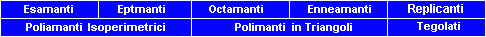 Ci sono 12 esamanti che coprono un'area di 72 triangoli. Questi sono riportati qui sotto con i nomi con cui solitamente sono conosciuti uno ad uno.
