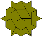 If we restrict the sets so that no 30º angle is produced then we get the following sets of what we may call blunt polypons and it seems likely that higher order sets could produce some interesting constructions although the numbers grow very slowly (see right hand column of the table above). The 13 enneapons have an area equal to that of a 5-3 trapezium and the 102 dodecapons could well have formed a number of parallelograms and trapezia except for the fact that one of the pieces has a 330º angle which cannot be filled and so perhaps for this and higher sets we should add the stipulation that no 330º angle is produced either. If we omit the dodecapon which is in the shape of a triangle then the remaining 100 pieces could well form a triangle.