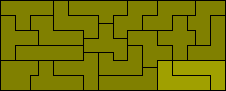 This set is quite small and does not produce any interesting constructions. Removing a half square from the pentominoes gives us this set of 19 pieces. The only possible rectangles with the truncated pentominoes would be 4½ x 19 or 8½ x 9. Brendan Owen has shown that no solution exists for the 4½ x 19 and Patrick Hamlyn has found two solutions so far for the 8½ x 9.