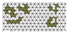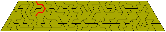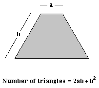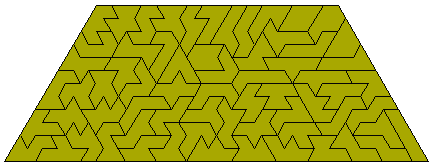 Note: In the remainder of this page reference will be made to various trapezia to made with polyiamonds. We shall use the term a-b trapezium to denote the figure shown below. Thus the trapezium above will be referred to as 7-4 trapezium.