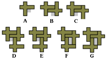 All but four of the heptominoes tile the plane. The one with the hole obviously will not and the other three can be shown to be non-tilers by simply trying to fill the plane starting from one of the pieces. In the diagram below we start by trying to fill the grey square in A. This leads to situations B and C which in turn lead to D and E (from B) and F and G (from C). We now have grey squares which cannot be filled.