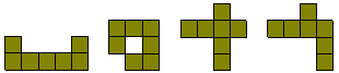 For the pentacubes we firstly note that the solid pentominoes tile space by means of single layers in the same way the pentominoes tile the plane. For the remainder we look at the diagram below. At the top is a tiling of the plane with pentominoes such that they are all in the same orientation. If from this we remove one cube and place it above (or below) the remainder of the pentomino then we have a tiling of one layer with symmetrically placed holes and another layer above (or below) with single cubes in the same pattern as the hole. A second layer can be placed above (or below) filling the original layer completely. This can be continued indefinitely to tile space. The rest of the diagram below shows how the various pentacubes can tile using this pattern. There are three pentacubes that cannot be tiled this way but if we remove two cubes from each layer and do the same as the above we again tile the plane (see bottom row of the diagram).