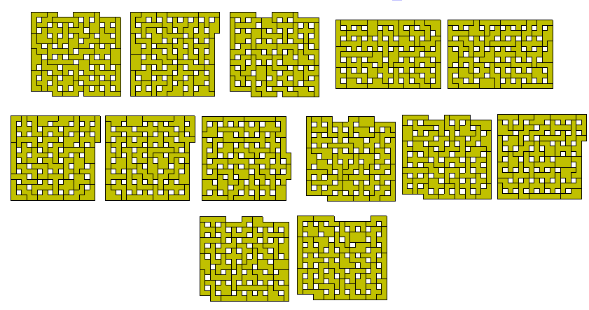 Mike Reid has found alternative solutions to these by means of forming multiple rectangles with the full set.