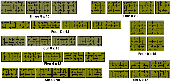 A number of other patterns are possible with this set such as the two 'squares' shown here. The second one of these could also be formed from the four 9x10 rectangles above. The figure at the top right is by David Bird.