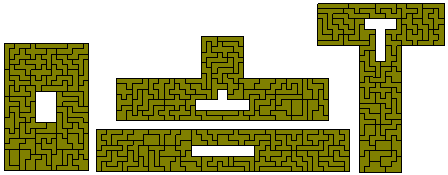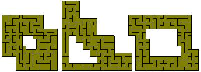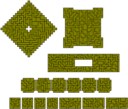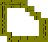 Here the problem is to find a figure with the maximum number of unit holes. The greatest known number is 50 although up to 56 may just be possible. The figure at the left was made by hand in the 1970s but Patrick Hamlyn has improved on this with two solutions where the 50 holes are in a rectangle. This is the maximum number which can be put into a rectangle.