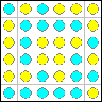 You have a square grid of size n by n. You also have unlimited supplies of stones in each of two colors. Place a stone on each cell of the grid. For example: