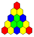 Note the symmetry of the triangular board: there are three corner holes (red), three interior holes (green), and three holes at the midpoint of each edge (blue), plus six "other" holes (yellow).