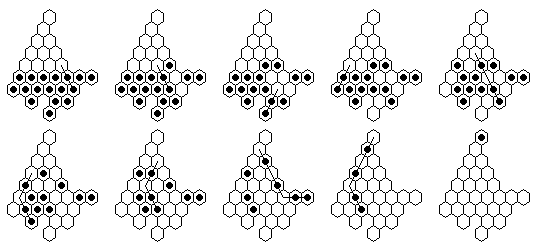 ![]() ![]() The smallest army capable of moving forward eight rows, when diagonal jumps are allowed [P2]. |
