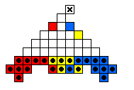 The table below shows minimal armies divided into "regiments". For example, all the red men form a regiment which is capable of reaching the top hole colored red. The red and blue men are usually mirror images of one another. The final hole to be reached is marked by an X. Sometimes it is the case that one regiment must move before the others. Note that the army diagrams presented above do not necessarily proceed forward by regiment. In general, there are many ways that a specific army can move forward to reach its final target hole.