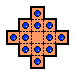 A resource count which is useful computationally is the one shown below. Unlike most 4-move resource counts, the one below is still valid even with diagonal moves. For the central game in the English or French boards, this resource count starts at 8 and finishes at 0. On the English game, the first and last jumps lose 4, leaving only 4 to be lost by the rest of the solution. On the French board, the solution above stays at 8 until the very last move, which loses all 8!